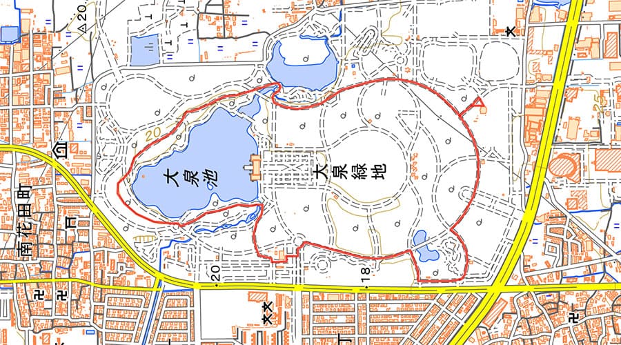 キャッシュ保存することでオフライン環境でも使える通常の地図機能(国土地理院地図)に加えて、「大泉緑地カバくんスタンプラリー」では、ルートやコースタイム情報が追加されたコースマップが用意されています。出かける前にコースマップをダウンロードしておけば、オフライン環境でも利用することができます。