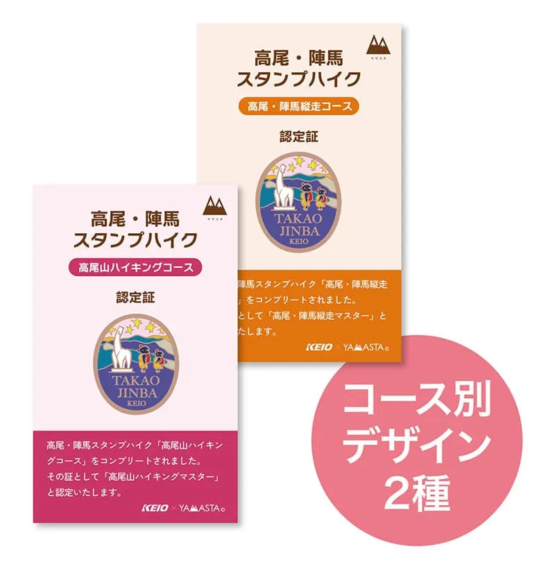 スタンプラリーコースは、高尾山の山頂をめざす「高尾山ハイキングコース」と、高尾山から陣馬山への縦走に挑戦する「高尾・陣馬縦走コース」の2コースがあり、ご自身の体力に合わせてチャレンジできます。