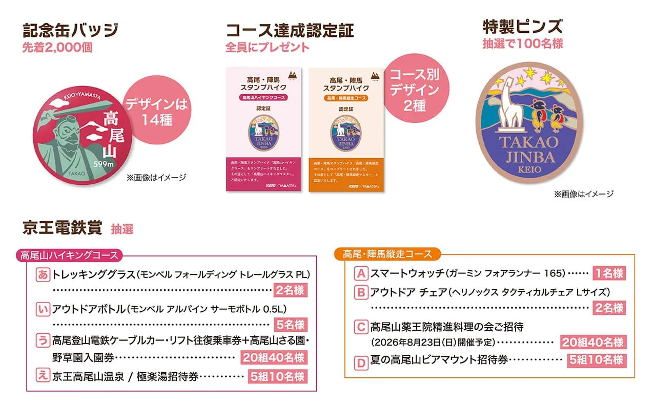 特典の配布条件や配布場所は、「高尾・陣馬スタンプハイク」の特設ページをご確認ください。